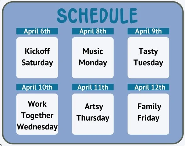Table at the kickoff event on Saturday, April 6th and provide resources and/or fun activity for children/families.